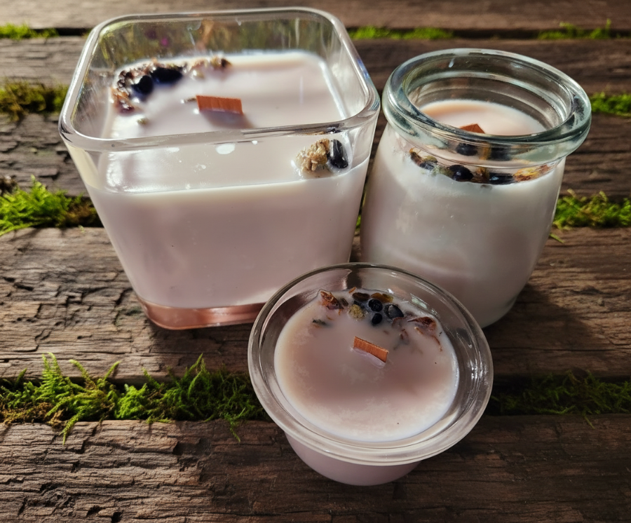 This Viking Candle is the perfect tool for bringing strength and self-confidence into your life. It contains black onyx and tiger's eye crystals with yarrow and St. John's Wort herbs. Our soy wax candles are hand-poured in small batches with a wood wick, and this one melts into a pool of copper.