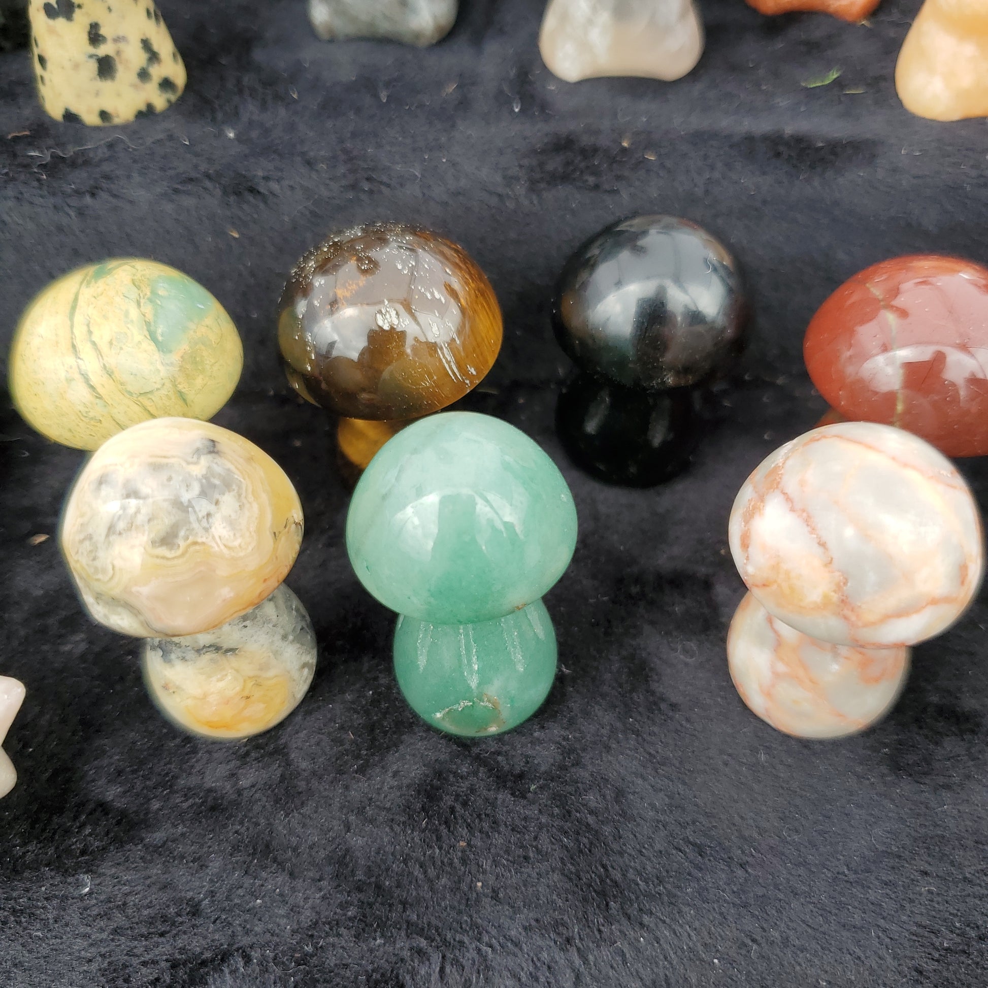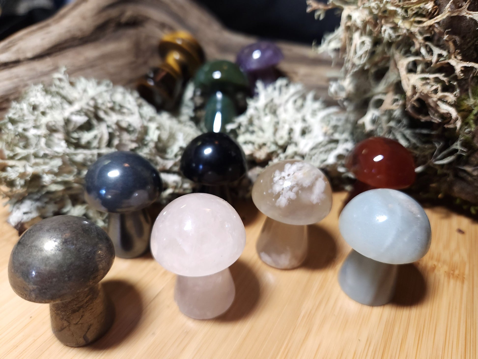 Mushrooms in various crystal types. They are appx 1.25" high.