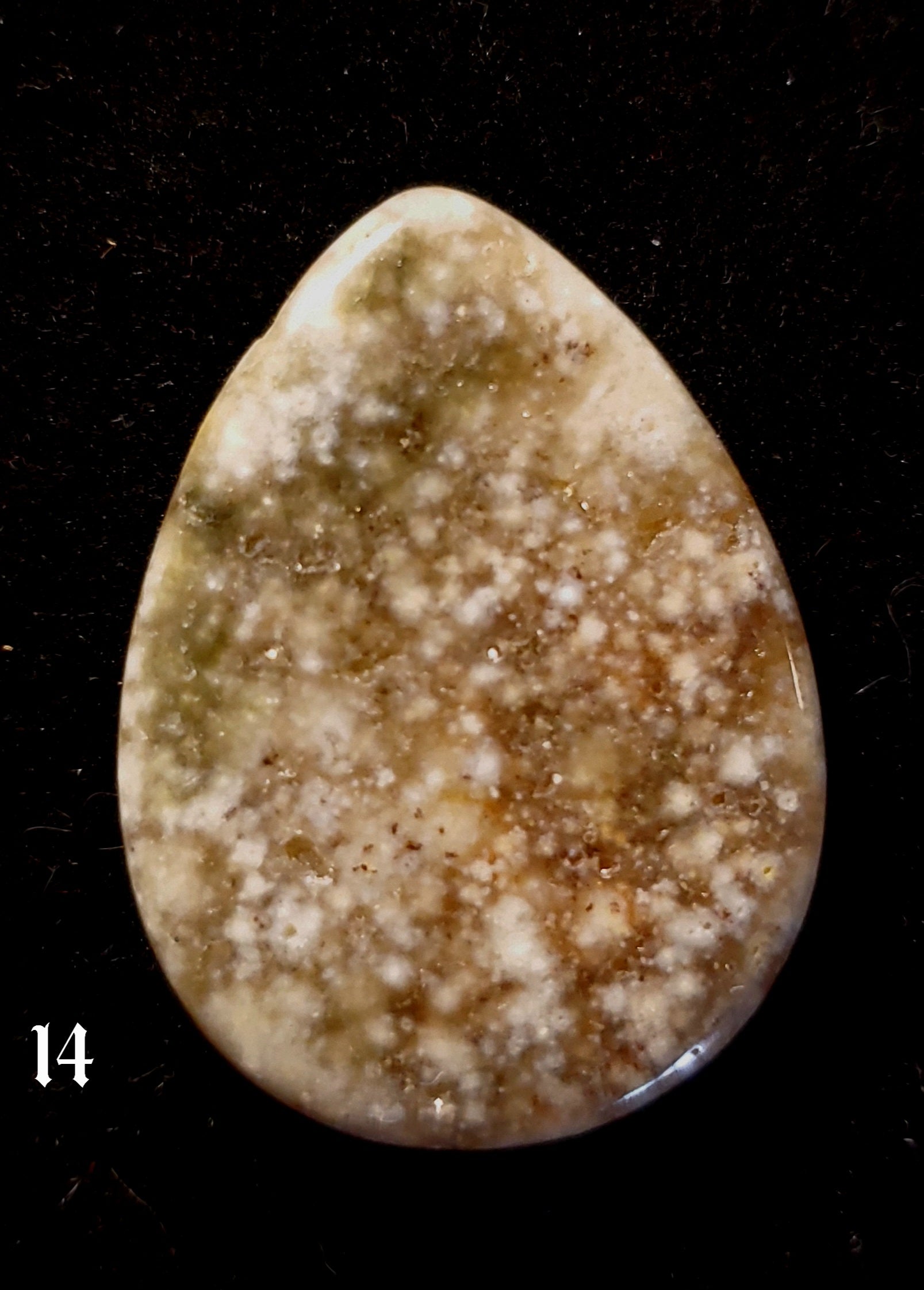 Choose which one calls to you. Each stone is unique. They are appx 1 1/4" x 3/4" or 22x30mm. They are easily made into a pendant to wear.
